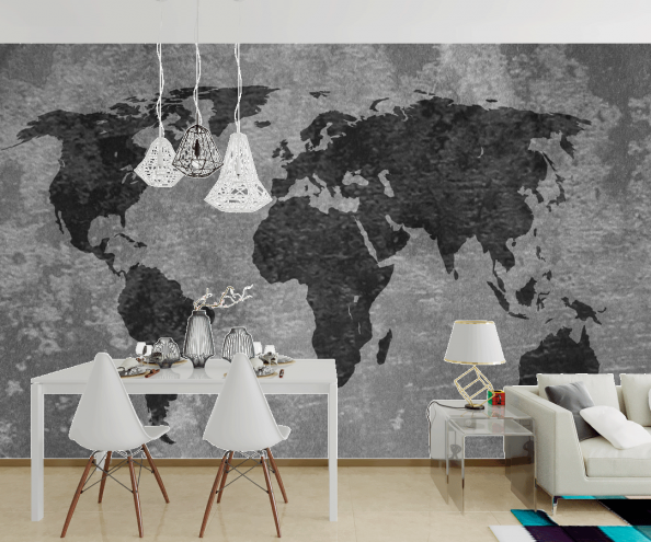Фотообои Черно-белая карта мира
