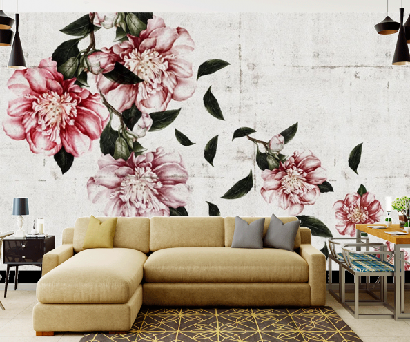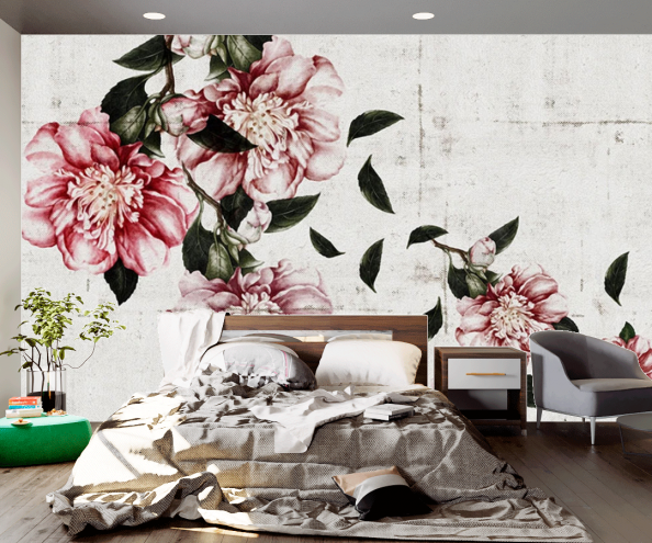 Фотообои Винтажные цветы на фоне стены