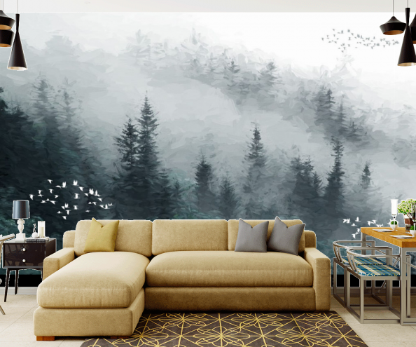 Фотообои Горы и лес в тумане