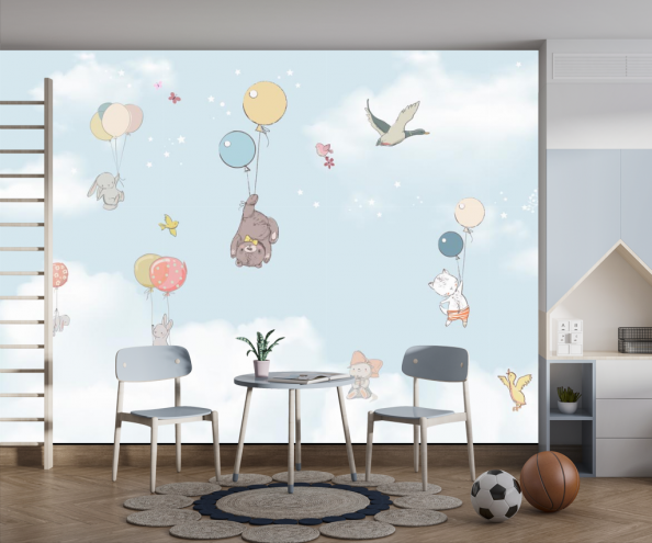 Фотообои Зверушки на воздушном шаре