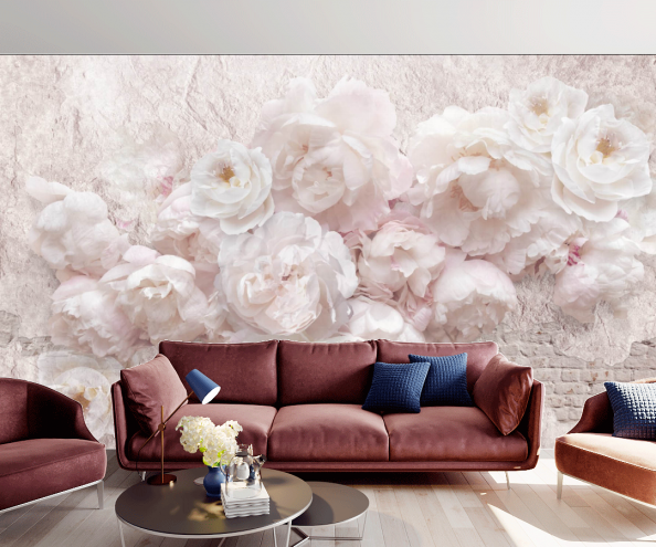 • Фотообои красивые пионы на фоне стены