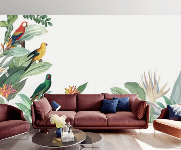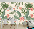 Фотообои Тропические листья с птичками