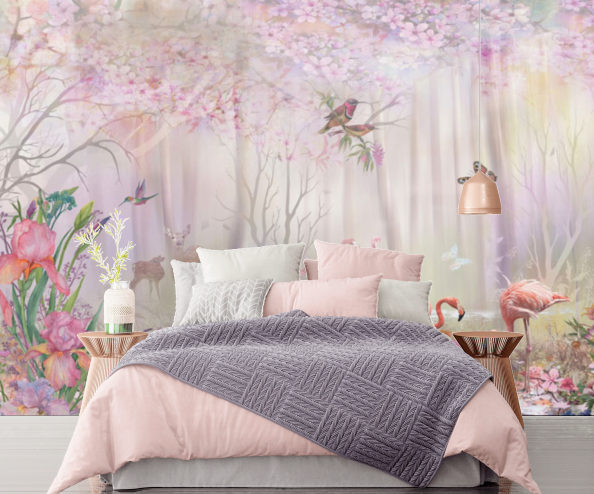 Фотообои с фламинго в сказочном лесу