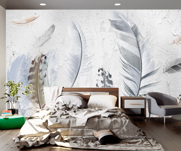 Фотообои Перья на фоне штукатурки