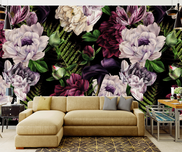 Фотообои Цветы на чёрном