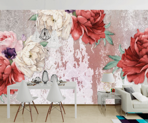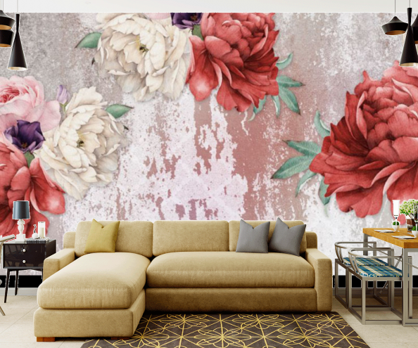 Фотообои Пионы на фоне стены gost1