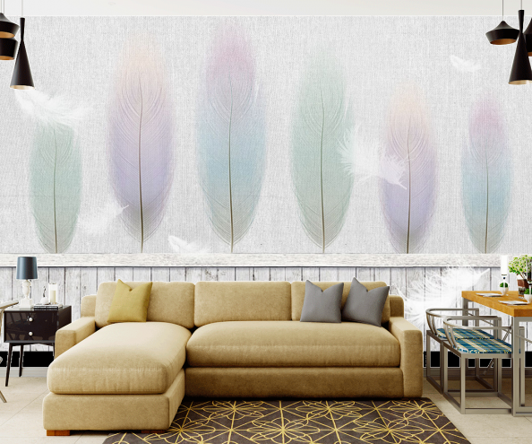 Фотообои Цветные перья на сером фоне