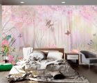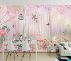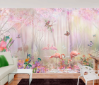 Фотообои Розовые фламинго в сказачном лесу 22486