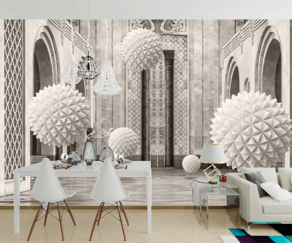 • Фотообои 3д сферы в коридоре
