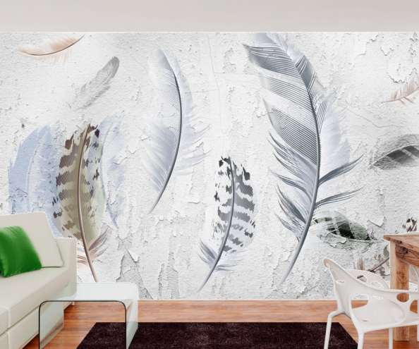 Фотообои Перья на фоне штукатурки