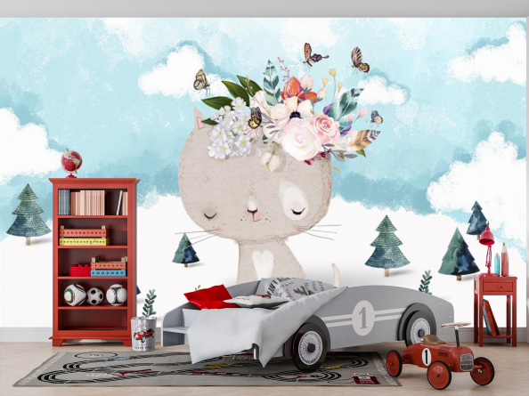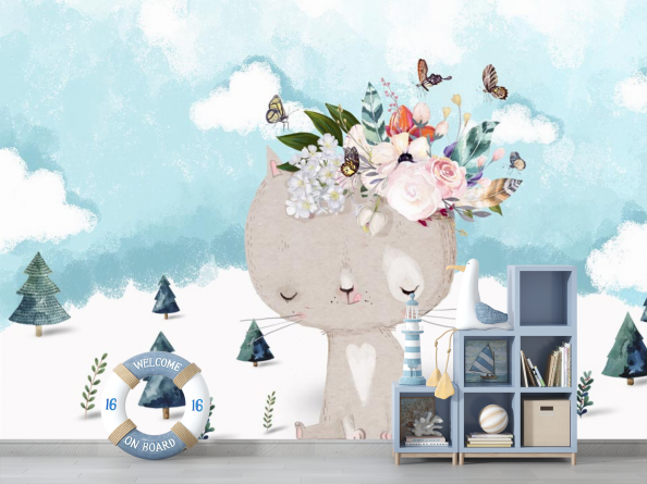 Фотообои Кот в зимнем лесу