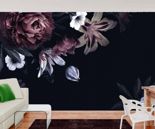 Фотообои Цветы на чёрном