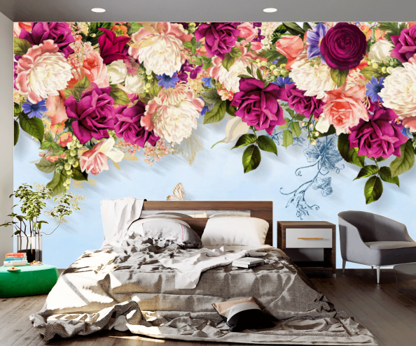 • Фотообои Яркие цветы с потолка