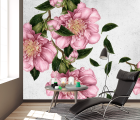 Фотообои цветы на фоне стены