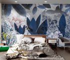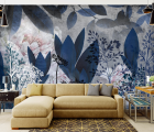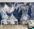 Фотообои Цветы и листья синие 24018