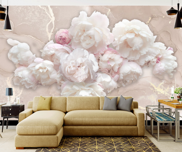 • Фотообои пионы на фоне флюида