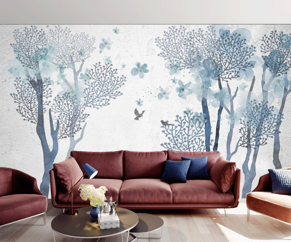 Фотообои Ручная роспись, синее дерево