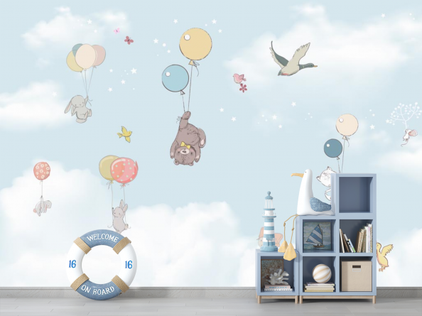 Фотообои Зверушки на воздушном шаре