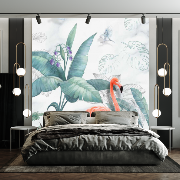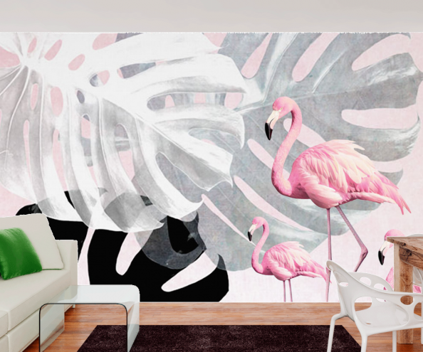 Фотообои Фламинго на фоне декор стены