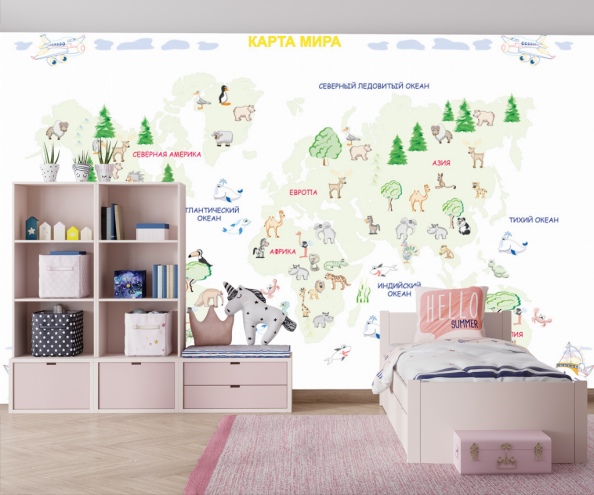 Фотообои Десткая карта с животными