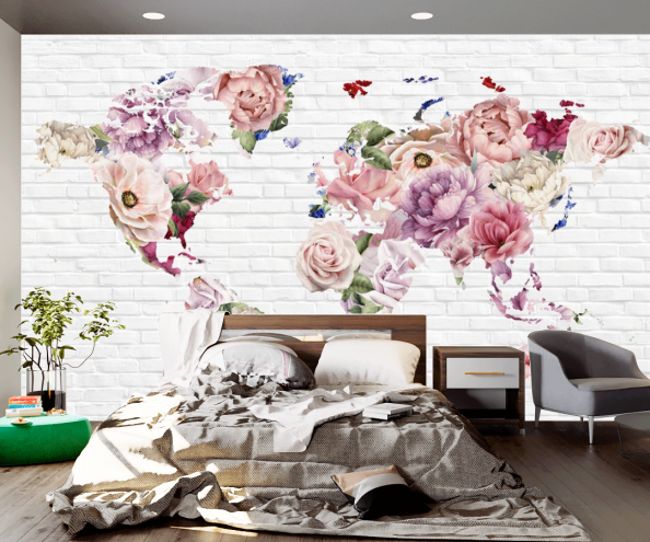 Фотообои Яркие цветы в форме карты