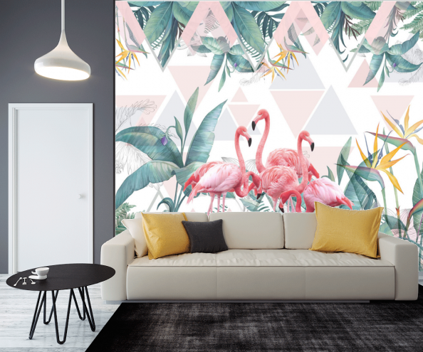 Фотообои Фламинго и тропические листья