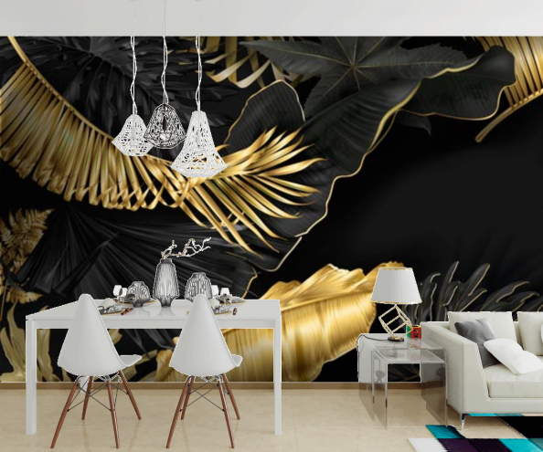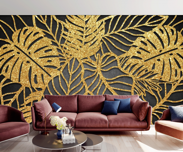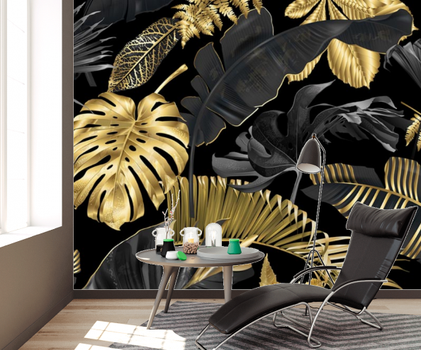 Фотообои Золотые листья на темном фоне