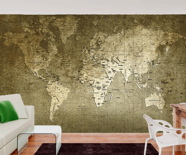 Фотообои Золотистая карта мира